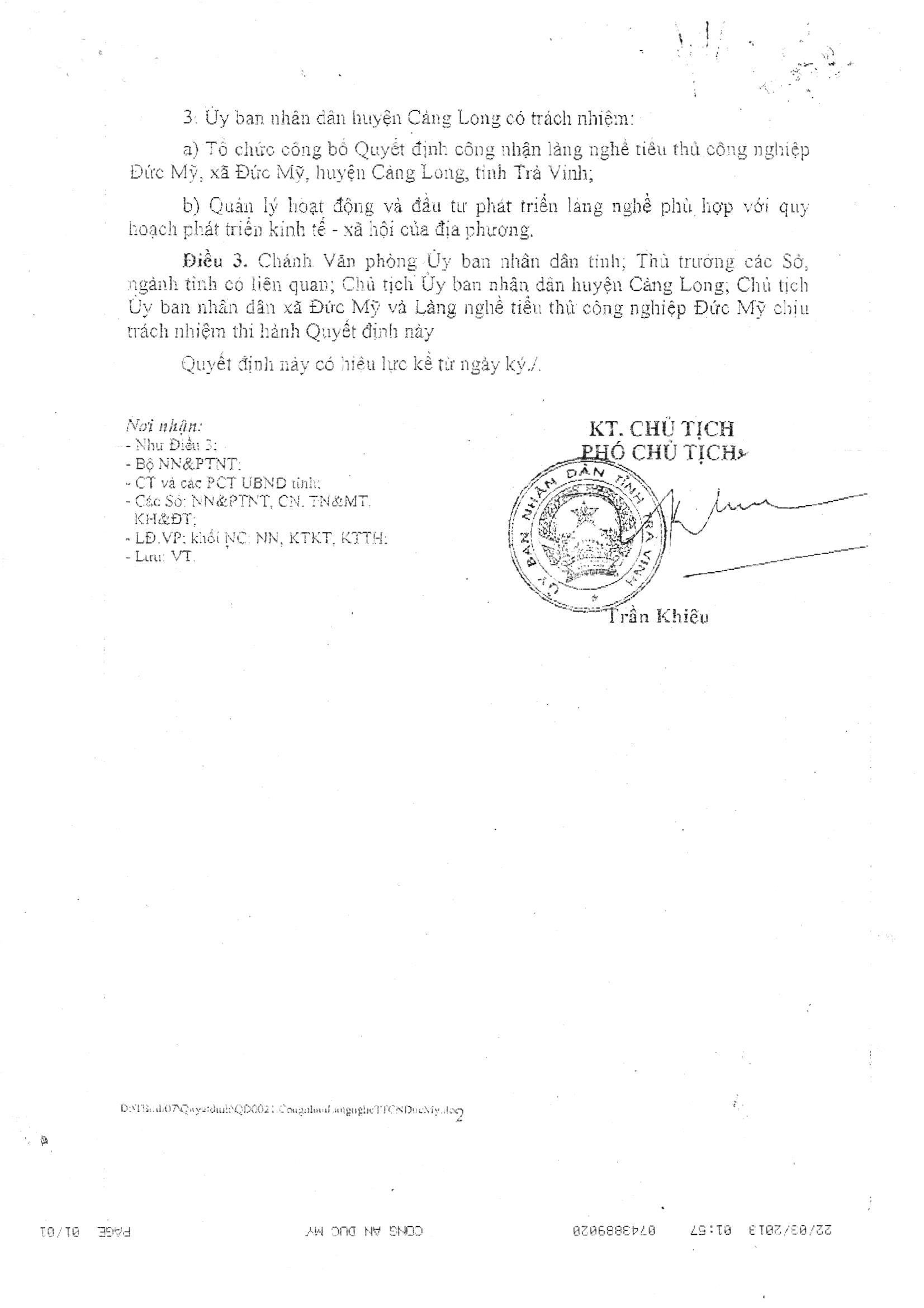 Làng nghề tiểu thủ công nghiệp Đức Mỹ, xã Đức Mỹ, huyện Càng Long, tỉnh Trà Vinh được công nhận đạt tiêu chí làng nghề theo quy định tại điểm 2, mục I, phần II Thông tư số 116/2006/TT-BNN ngày 18/12/2006 của Bộ Nông nghiệp và Phát triển nông thôn.